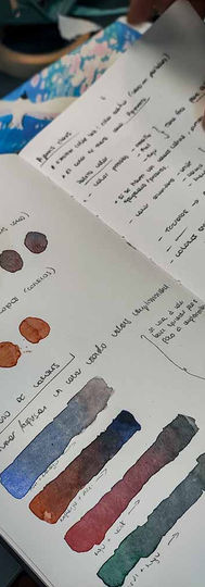 Mes 1: Fundamentos Técnicos Clase 1: Introducción a la acuarela Materiales, consistencias del agua (té a mantequilla), técnicas húmedo/seco y veladuras. Ejercicio: Cielo con nubes. Paleta: Azules fríos y cálidos. Clase 2: Control del agua y pincel Técnicas de color liso y degradado. Ejercicio: Paisaje minimalista con montañas. Paleta: Rojos fríos y cálidos. Clase 3: Texturas y efectos expresivos Uso de sal, vela, plástico, reservas y levantados. Ejercicio: Fondos texturados y atmosféricos. Clase 4: Teoría del color aplicada Círculo cromático y armonías. Ejercicios: Acuarela monocromática y tríadas armónicas. Mes 2: Composición y Motivos Naturales Clase 5: Volumen y claroscuro Dibujo de formas geométricas y estudio de luz/sombra. Ejercicio: Composición con figuras geométricas en monocromo. Clase 6: Bodegón con frutas y objetos Bocetos previos, estudio de color y paleta. Ejercicio: Bodegón a partir de referencia fotográfica. Clase 7: Paisaje y composición Reglas de composición, perspectiva atmosférica. Ejercicio: Paisaje con referencia fotográfica. Clase 8: Figura humana básica Esqueleto sintético, figuras esquemáticas y gestuales. Ejercicio: Figura expresiva en monocromo. Mes 3: Desarrollo de Obra Final Clase 9: Boceto y propuesta de obra Tema personal, composición, paleta y feedback grupal. Clases 10 y 11: Desarrollo de obra final Trabajo guiado en acuarela de formato grande. Clase 12: Cierre y revisión Revisión grupal, reflexión del proceso, entrega de diplomas y fotografía final.